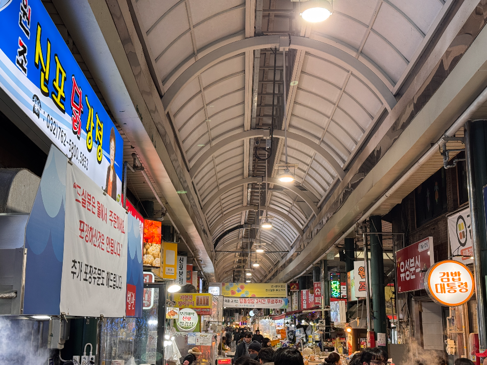 날씨가 정말 추웠다. 인천 신포시장에 도착했을 때, 바람이 너무 차서 얼굴이 얼어붙을 정도였는데, 그 추위 속에서 사람들이 줄을 서서 기다리고 있었다. 신포닭강정은 이미 유명한 곳이라서 그런지, 줄 서서 기다리는 사람들의 얼굴에는 기대감이 가득했다. 줄을 서는 곳이 애매해 서있는 사람에게 대기줄의 끝이 어디냐고 물어봐야 했다. 대기시간은 대략 40분 정도였고, 그 시간 동안 내내 바람에 시달리며 손을 호호 불며 기다렸다. 대기하는 사람들끼리도 그 차가운 공기를 맞으면서 서로 "여기 맛있다고 들었어요", "기대돼요"라고 말하며 시간을 보냈다.