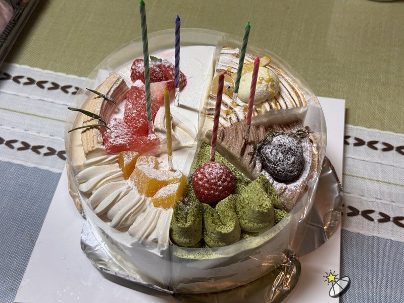 조각케이크는 다행히 홀케이크처럼 둥글게 배치해 주셔서 생일케이크로도 손색이 없었다. 실제로 이렇게 배치하니 2호 케이크보다 약간 더 커 보이는 느낌이었다. 덕분에 가족들과 나눠 먹기에도 충분했고, 각기 다른 맛을 즐길 수 있어 더욱 만족스러웠다. 재료를 아까지 않아 과일도 풍부했고, 크림도 아주 맛있었다.