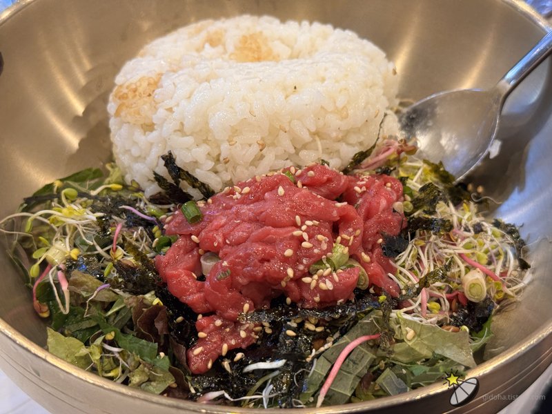 최근 점심을 해결하기 위해 우연히 들어간 스뎅식당은 프랜차이즈 고깃집이다. 주로 냉동삼겹살과 우삼겹 같은 고기구이를 저렴하게 맛볼 수 있는 곳으로 알려져 있지만, 나는 고기를 먹으러 간 것이 아니라 점심밥을 먹으러 갔다. 이유는 간단했다. 육회비빔밥과 순두부찌개가 각각 6,000원이라는 놀라운 가격 때문이었다.